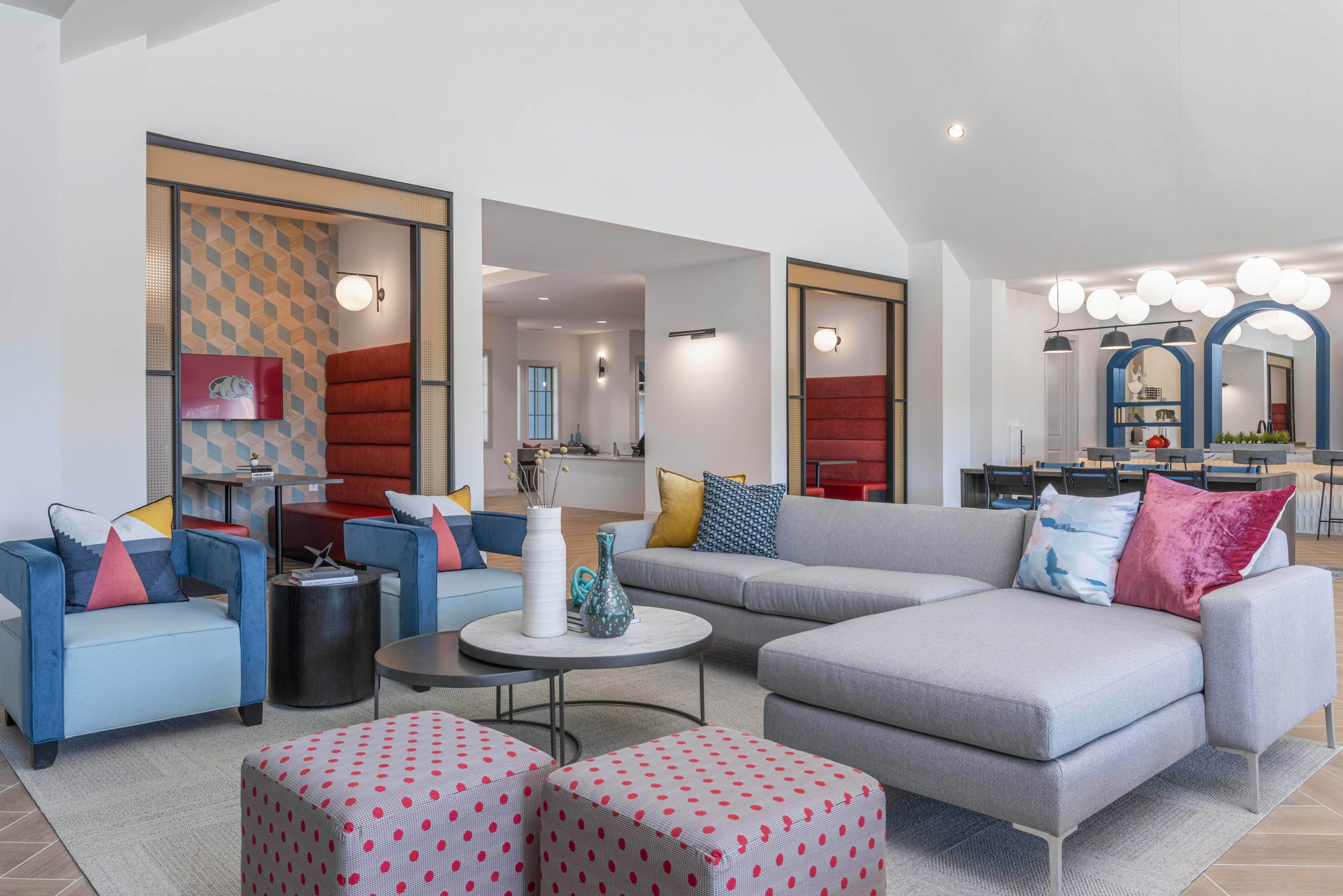 Our design team created dynamic, interactive spaces for the community clubhouse at The Retreat on East serving the students at the University of Central Florida. Working alongside Landmark Properties, a returning client, designers were familiar with their desired aesthetic and delivered stylish and comfortable spaces for residents to relax and connect with their community.
