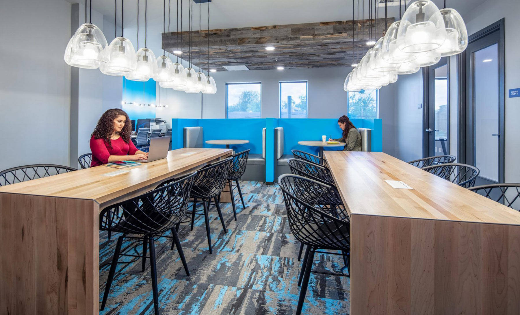 The new (post pandemic) normal will continue to see more renters working from home, so additional square footage will need to be devoted to co-working in multifamily communities. When programming for amenities we strive to include a variety of spaces for residents to work, one that include flexibility, with modular furniture, as well as options for privacy such as smaller rooms for 1-3 people. Other post pandemic elements will be additional signage to decrease foot traffic, touchless fixtures, hands-free door pulls and anti-microbial surfaces.