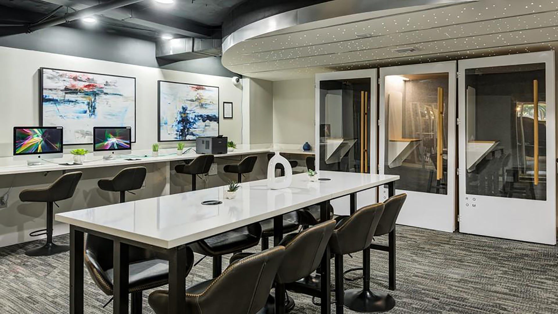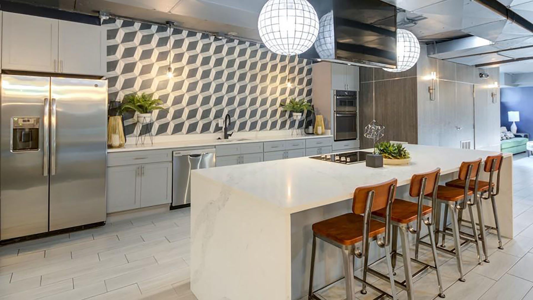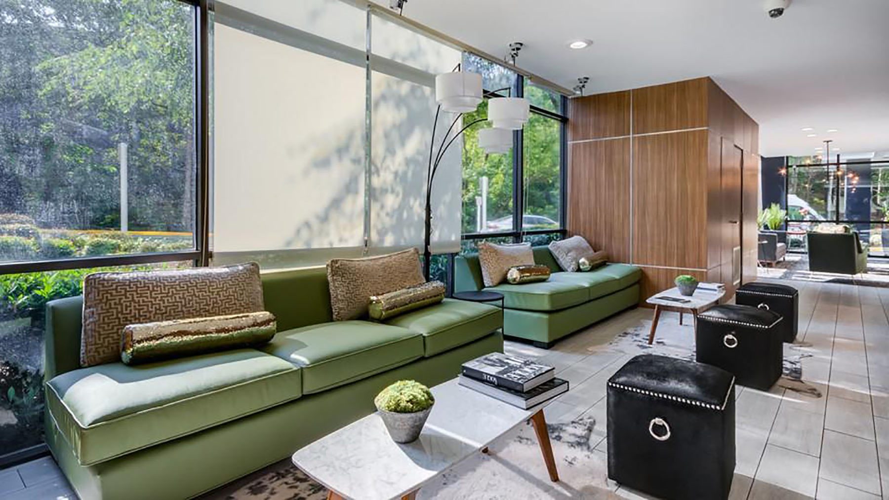 Located in Alexandria near the Potomac River, just a short distance away from Washington D.C., this 10-story high rise was built in 1975 and renovated in 2019. The design team reimagined several amenity spaces such as the resident lounge which includes a demonstration kitchen, the rooftop fitness center, and game room. Redesigned with mid-century modern furniture and fixtures, a new aesthetic was established with organic textures, soft colors and welcoming design. Natural materials were incorporated to instill a sense of calm with intricate wood grains, smooth and sleek rattan.