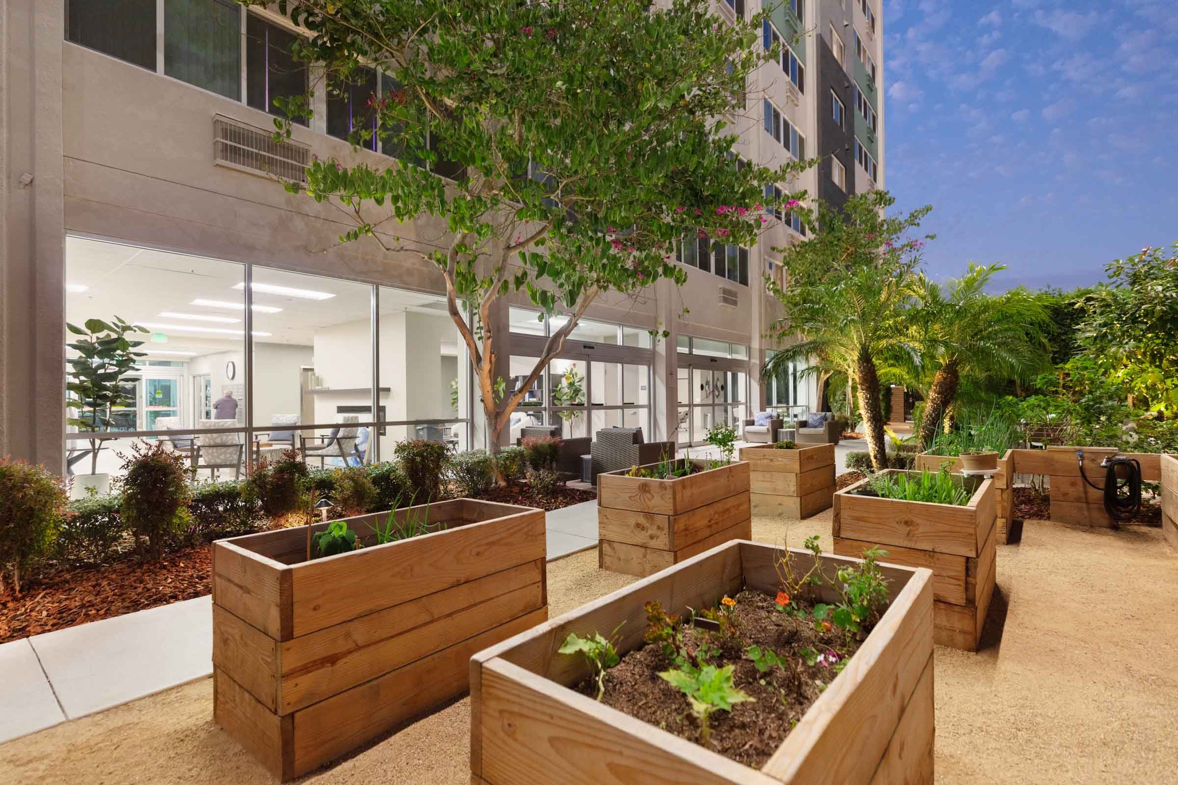 Built in 1973, Golden West Tower is located just over three miles from Redondo Beach and offers 180 units for seniors supported by the LIHTC (Low Income Housing Tax Credit) in Torrance, California. Our design team upgraded the property with new lighting and appliances, an exercise room, a theater and entertainment lounge and a dog run. The vibrant and uplifting interiors allow the residents to live abundantly, engage with neighbors, foster relationships, enjoy independent activities, and communal gatherings.