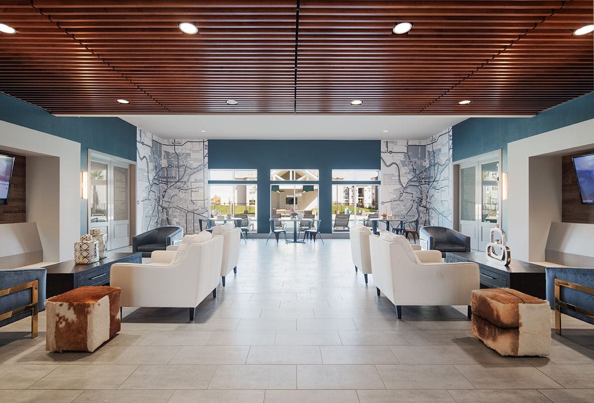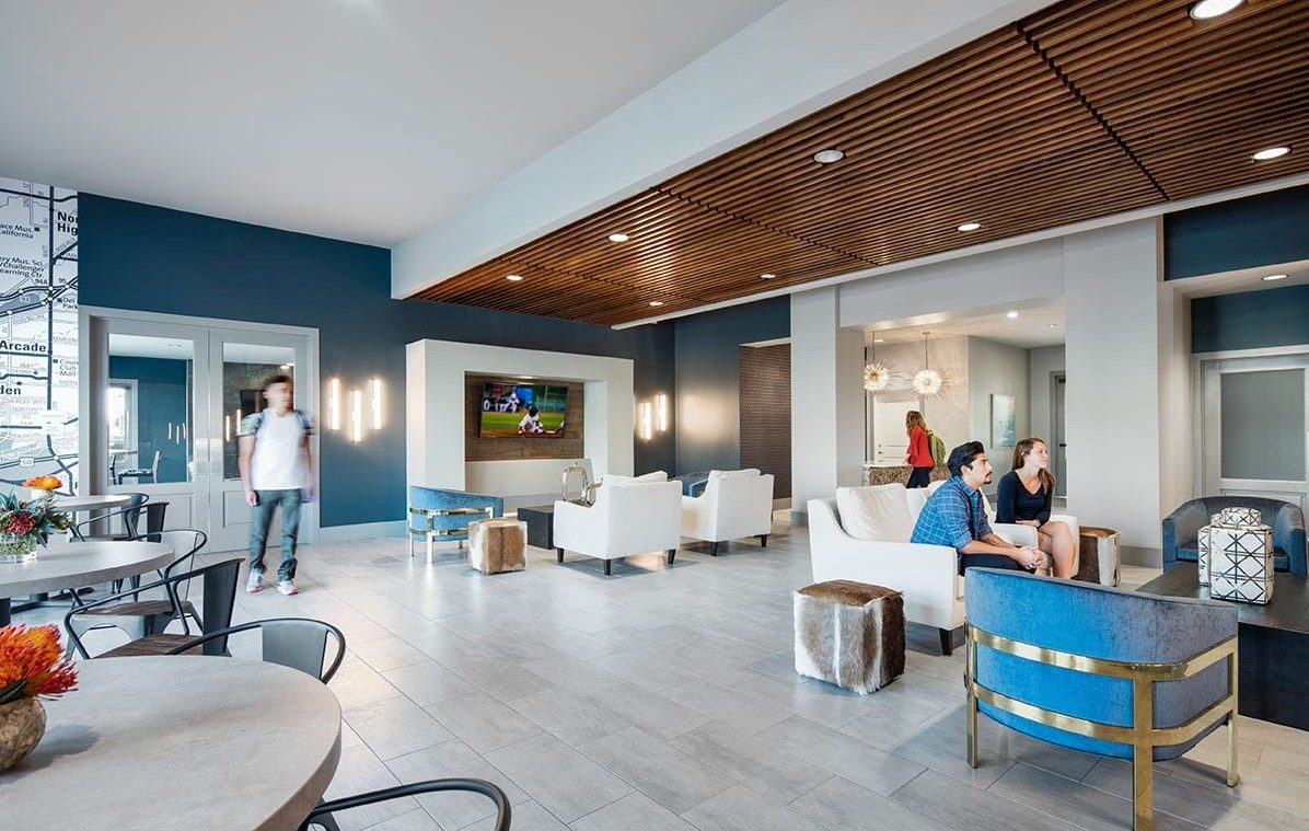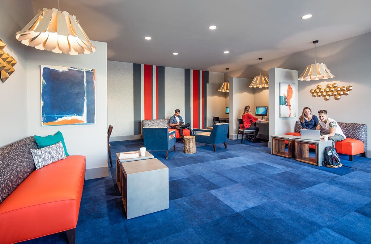 Lark Sacramento is a unique 726 bed housing community designed around California State University – Sacramento students, conveniently located just minutes from campus. As one of the most luxurious student housing communities to serve CSUC students, it offers a great location, the a large covered outdoor lounge area, resort style pool, and other over the top amenities. Modern design features bold blues mixed with brilliant vermilion to inspire creativity and liveliness.
