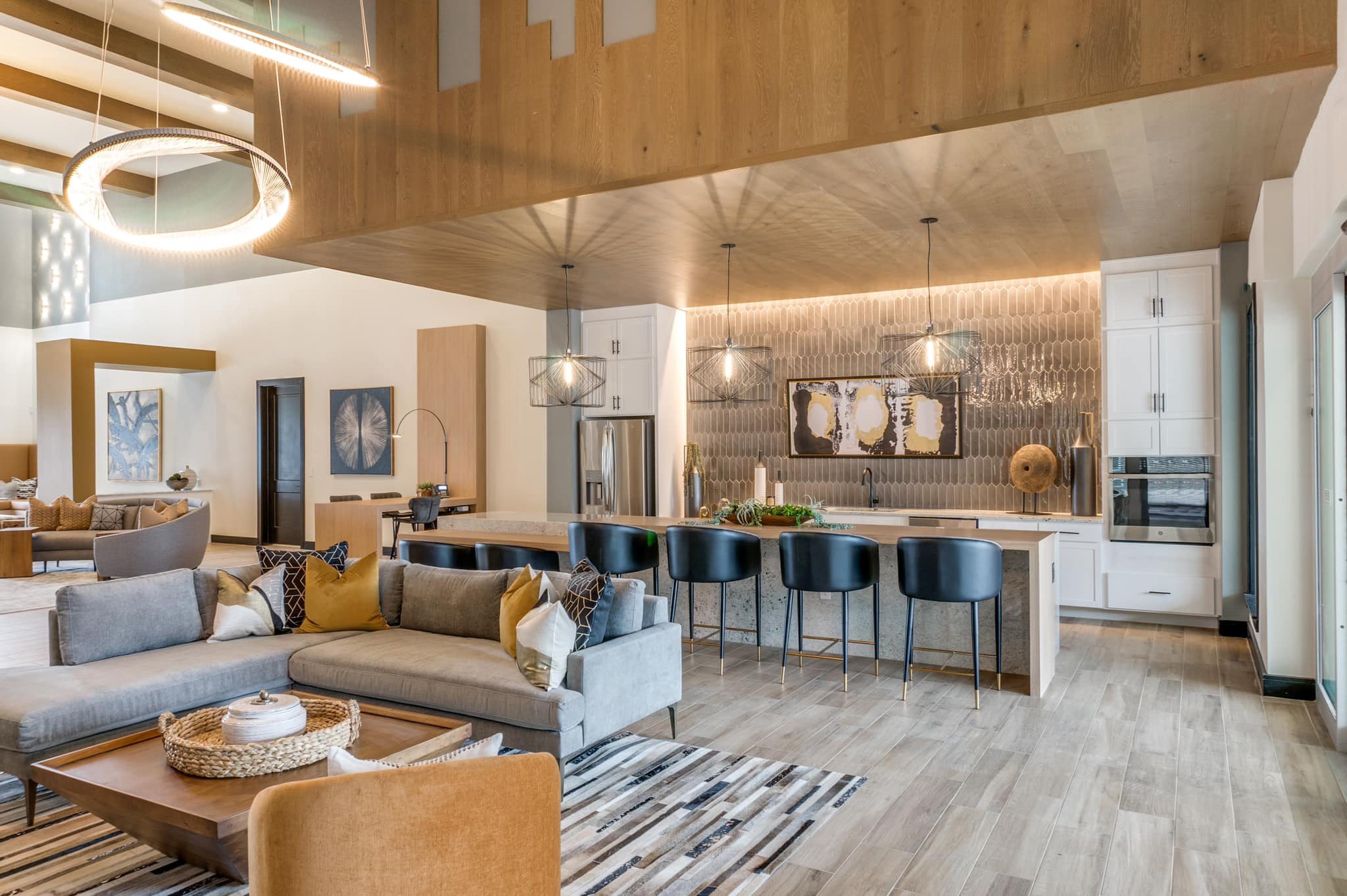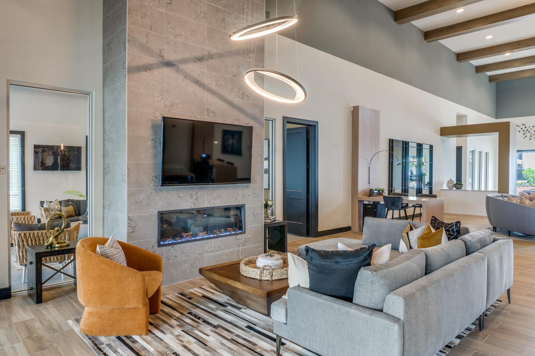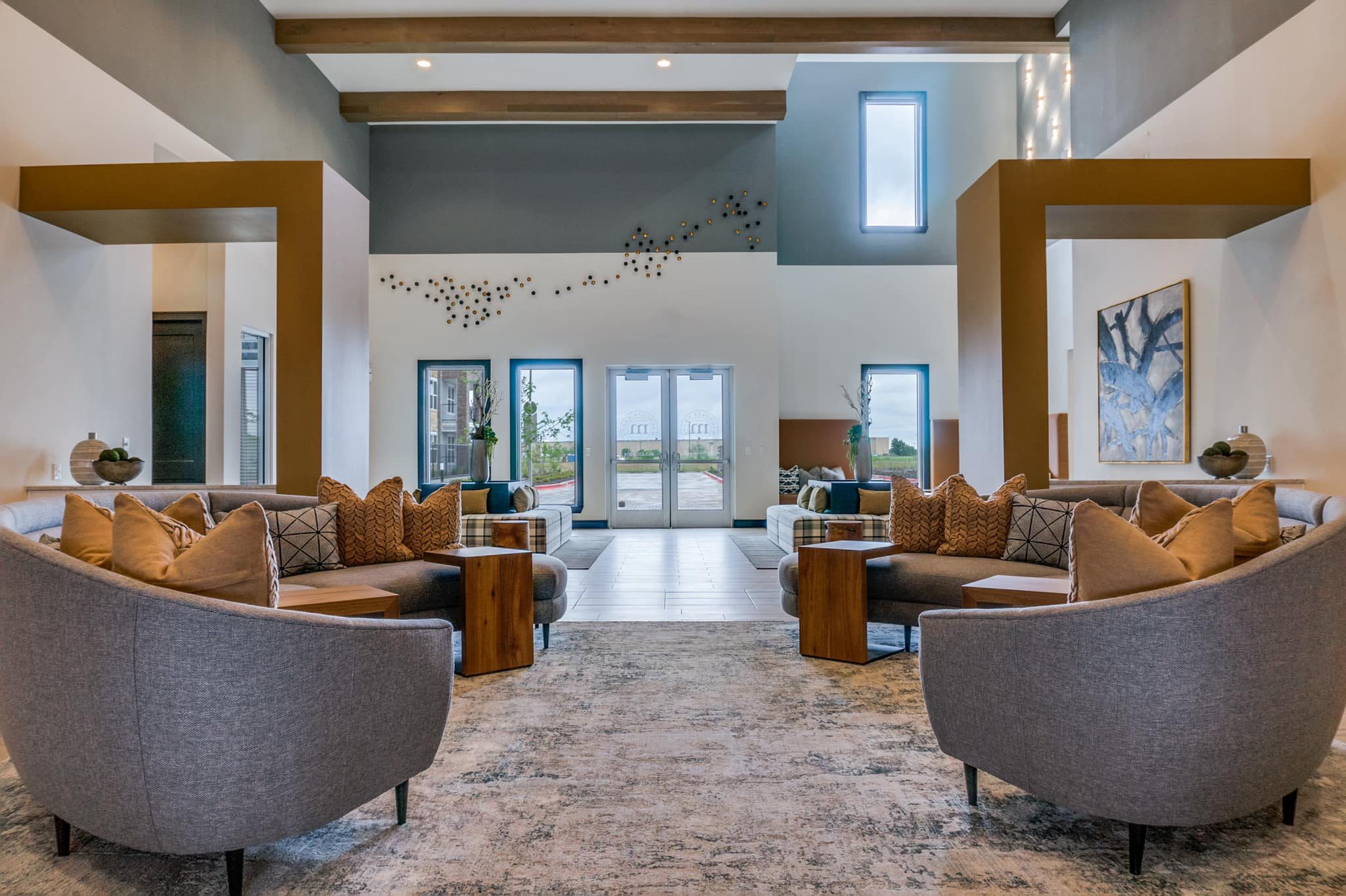 Located just outside of Dallas, in Terrell, this 3-story community is located in an up-and-coming neighborhood near shopping and restaurants. Modern sophistication is portrayed with the use of natural textures and a soft color palette. Double volume ceilings and stunning millwork bring soaring ceilings down to scale while an expansive demonstration kitchen and movable doors invite residents to connect. Amenities include a resort-style pool and lounge, an outdoor grotto with shuffleboard, media room, and pet park.