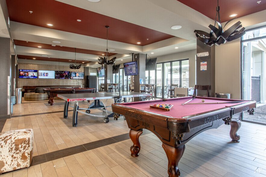 Located minutes north of the Texas A&M campus in College Station, this mixed-use, 5-story wrap consists of 627 units and 928 beds. Community spaces throughout evoke the spirit of Aggieland including a floor to ceiling mural in the coffee bar and lounge area. Other amenities feature spacious outdoor seating, secluded glass study pods, two pools, a game room and outdoor CrossFit station.