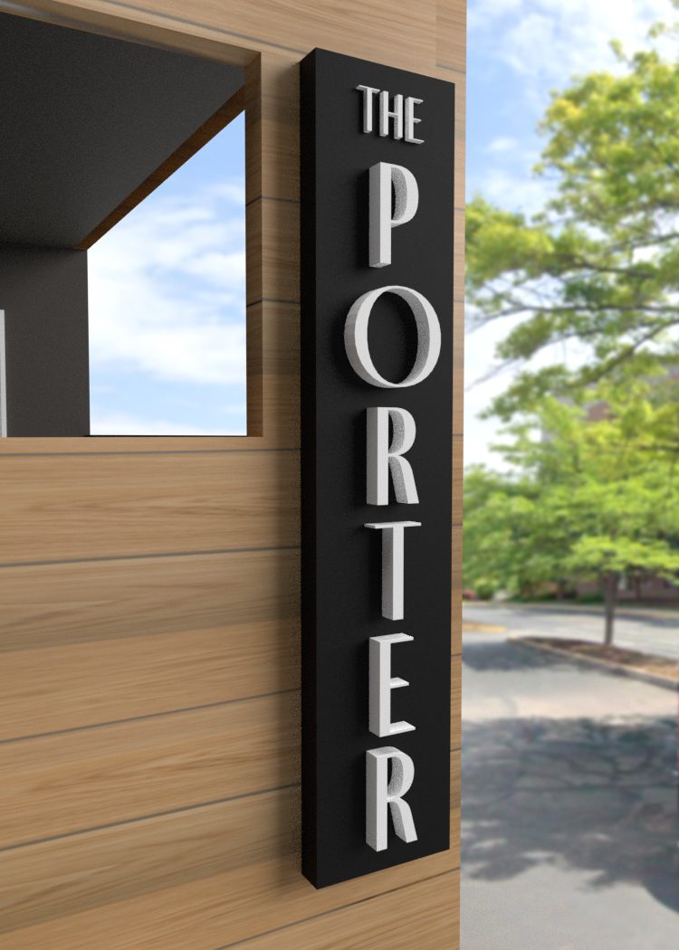 The Porter, located in St. Louis, Missouri will offer residents over 11,000 square feet of interior amenities and 254 living units. Sleek, modern, and sophisticated describes the overarching Interior Design aesthetic and this attitude is carried through to the Signage Design, with modern metals, graphic embellishment and contemporary shapes.